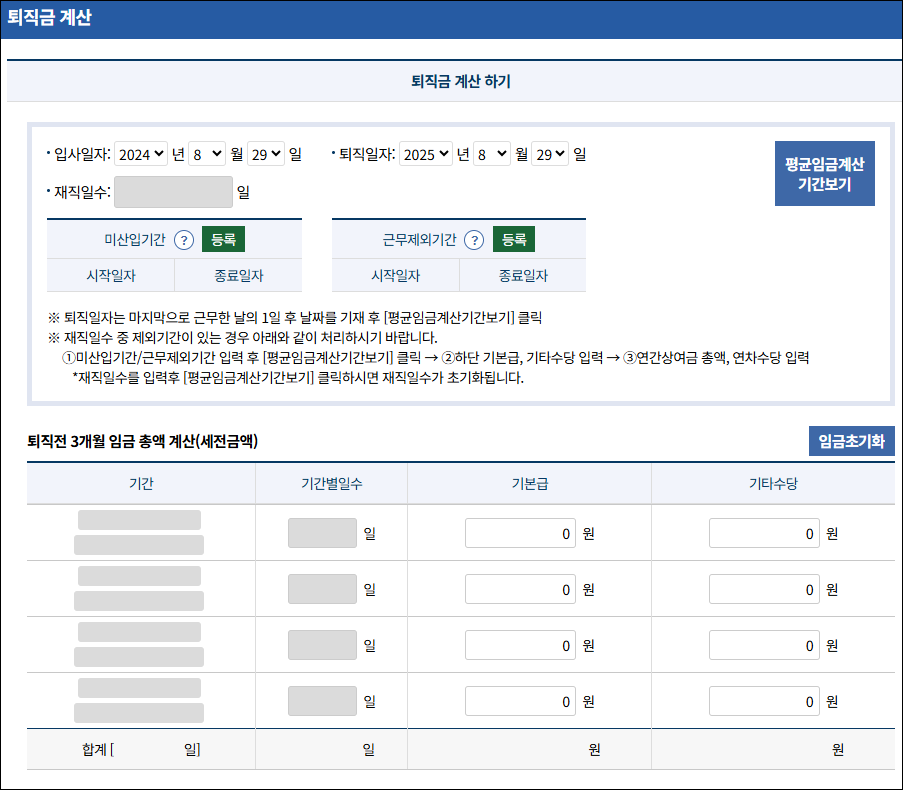 보다 정확한 계산은 고용노동부 퇴직금 계산기를 활용하면 편리합니다.