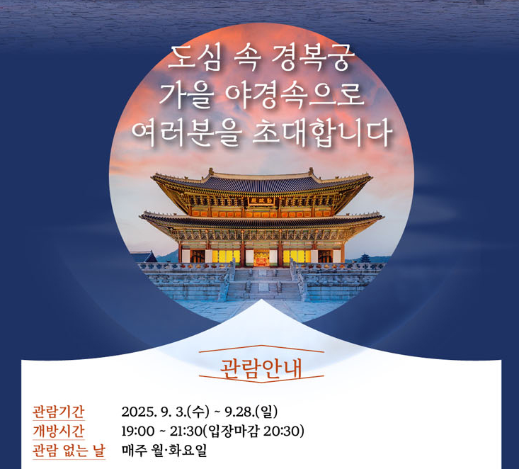 2025년 하반기 경복궁 야간관람은 아래 일정으로 운영됩니다.