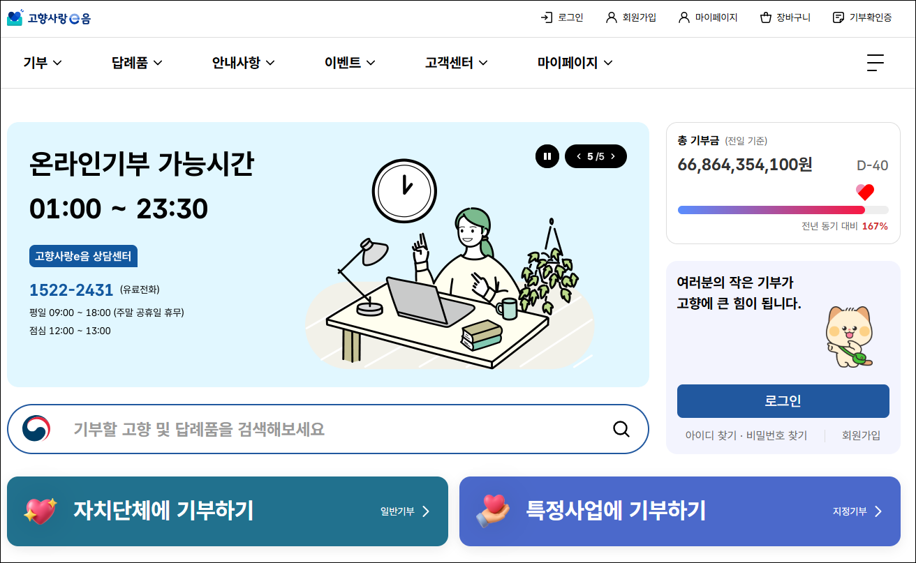 지역을 응원하는 가장 확실한 방법, 고향사랑기부제 정부/자치단체 공식 포털